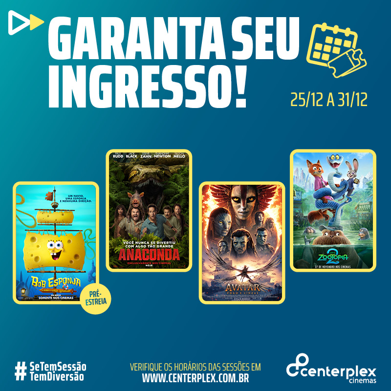 Centerplex Barretos celebra o fim de ano com estreia do novo Bob Esponja e Anaconda
