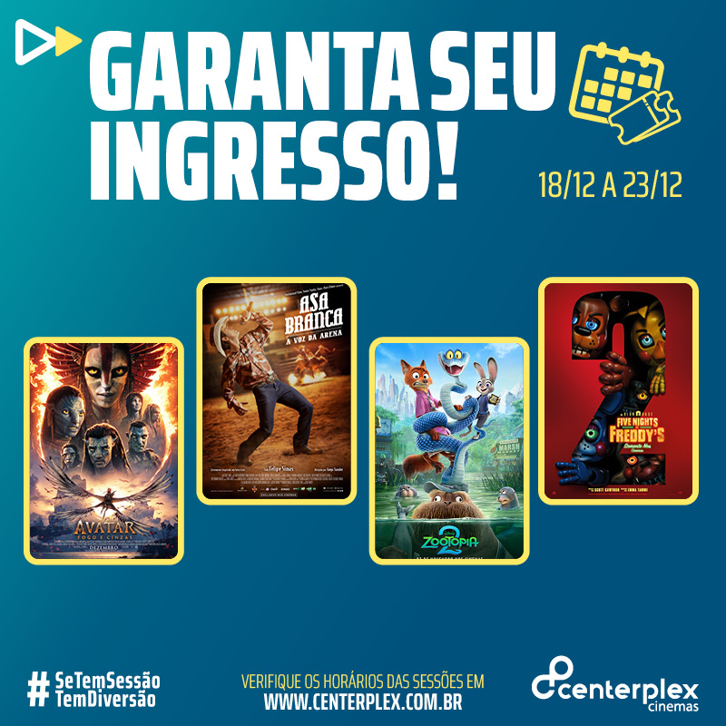 Neste final de ano, período que coincide com as férias escolares, o Centerplex Cinemas do North Shopping Barretos divulga a programação especial para públicos, com destaque para os longas-metragens “Avatar: Fogo e Cinzas” e “Asa Branca...